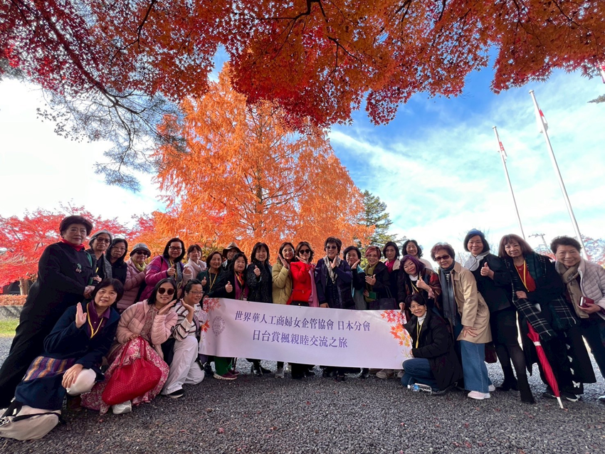 世界華人工商婦女企管協會日本分會完成交接典禮後翌日,新任會長蕭悧悧立即帶領第十二屆會員們前往埼玉縣秩父郡長瀞町舉辦為期一天的「賞楓親睦日台交流之旅」。此次行程同時匯聚了日台雙方精英,包括世華總會的林淑敏總會長、俞秀霞總監事長、鄭美滿與徐孟榆兩位副總會長、基隆分會許家虹會長、陳麗香準會長及其會員、經濟部「女性創業菁英獎聯誼會」呂麗美北區會長與多位成員(簡稱「女菁英團」)、與秩父市清野和彥市長共進午餐,以賞楓、美食、酒藏文化及深度交流為主軸,推動台日工商婦女界及地方創業生產等合作邁向新的階段。